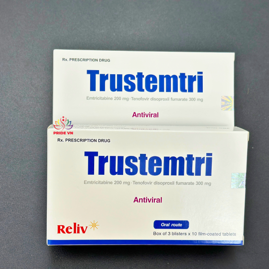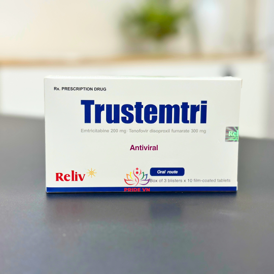 Trustemtri là thuốc Dự phòng trước phơi nhiễm HIV (PrEP) được sản xuất bởi BV Pharma (Việt Nam), chứa hoạt chất Tenofovir 300mg và Emtricitabine 200mg. Trustemtri không chỉ giúp ngăn ngừa lây nhiễm HIV mà còn được chỉ định trong điều trị Viêm gan B mãn tính. Thuốc sử dụng 1 viên/ngày tiện lợi.
